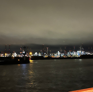 Vor meiner wunderbaren Kabine erwartete mich schon mein großes Gepäck und wenig später war auch der Rest vor Ort. Dann gab es die obligatorische Rettungsübung und gleich anschließend erklang die Auslaufmelodie und wir verließen Hamburg bei einem Glas Sekt und einer heftigen Brise. Nach einem leckeren ersten Abendessen und einem Rundgang über das Schiff (ganz schön kalt!) bin ich nun in der Kabine und bereite mich auf die erste Nacht vor. Für die nächsten Tage ist Sturm angesagt. Die Artania schwankt jetzt schon ganz schön - mal sehen, ob meine Maßnahmen gegen die Seekrankheit Erfolg zeigen.