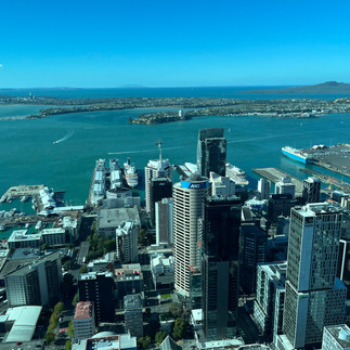Das letzte Ziel unseres Ausflugs an diesem Tag ist der Skytower, das höchste Gebäude der südlichen Hemisphäre und bestimmt ein modernes Wahrzeichen von Auckland. Insgesamt ist er 328 mtr. hoch. Es gibt zwei Aussichtsplattformen auf 186 und 220 mtr. Auf 192 mtr. Höhe hat man Gelegenheit einen Skyjump (192 mtr. an Seilen gesichert runterspringen - hat eine gute Freundin von mir gewagt!) oder, ebenfalls gesichert, einmal auf einer Plattform im Freien um den Turm herum zu gehen. Ich habe auf beides verzichtet! Aber der Blick von oben ist unbeschreiblich und auch der Blick senkrecht nach unten - wenn man auf einer der in den Boden eingelassenen Glasscheiben steht - ist atemberaubend.