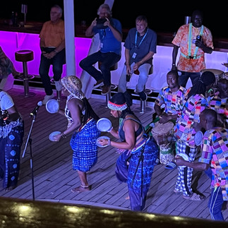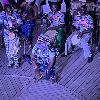 Wir können nur bei Flut den Hafen von Banjul und den Gambia-Fluss verlassen. Das ist erst gegen 23 Uhr möglich. Am Abend besucht uns noch eine Folkloregruppe und führt einige traditionelle Tänze auf.