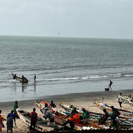 Jetzt verlassen wir Banjul Richtung Bakau, wo wir einen Fischereihafen besuchen. Wieder Dreck und Müll überall. Am Strand neben der zerstörten Landungsbrücke spielen Kinder im Meer. Auf dem Strand liegen die Fischerboote, die hier traditionell wunderschön bunt angemalt sind.