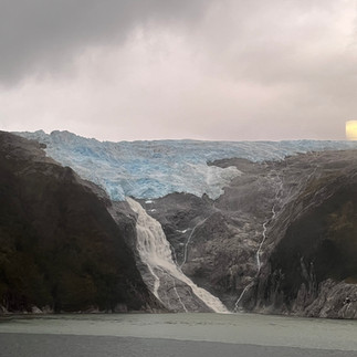 Die Gletscher der Anden reichen bis in dieses Gebiet. Unsere Passage durch den Beagle-Kanal ging also wieder an Ushuaia vorbei und führte uns dann durch die "Allee der Gletscher", die wir noch bei Tageslicht auf den Außendecks bewundern konnten. Warm angezogen und von innen mit Erbsensuppe und Glühwein gewärmt, bot sich uns eine grandiose Aussicht auf die verschiedenen Gletscherzungen. Die europäischen Auswanderer haben diesen Gletschern die Namen ihrer Heimat gegeben. Wir sehen Holland-, Italien-, Frankreich- und Deutschland-Gletscher. Ein grandioses Naturschauspiel.