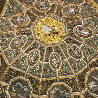 Als ersten Saal besuchen wir den Schwanensaal. Die Decke zieren 27 Darstellungen weißer Schwäne, den liebsten Tieren einer Königstochter, die in den Burgund verheiratet wurde.