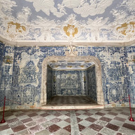 An der Decke des Wappensaals sind alle (Adels-)Familien verewigt, die loyal zum Königshaus standen. Die Wände zieren Jagdszenen aus portugiesischen Kacheln - in den Bergen rund um Sintra ging der Adel dieser Passion nach.