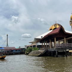 Auf dem Rückweg besuchen wir noch Kampong Ayer, das berühmte Wasserdorf von Bandar Seri Begawan - auch bekannt als "Venedig des Ostens". Auf Stelzen gebaut finden sich hier viele Wohnhäuser, in denen mehrere Generationen Platz finden. Zum Teil sind sie verbunden über Stege, ansonsten verkehren Boote. Es sind nicht mehr alle Häuser bewohnt, aber es ist sehr malerisch. Neben den Wohnhäusern gibt es auch Schulgebäude und andere öffentliche Einrichtungen wie eine Feuerwehrstation. Wir dürfen ein Haus von innen besichtigen und werden dort mit Tee und Kuchen bewirtet.