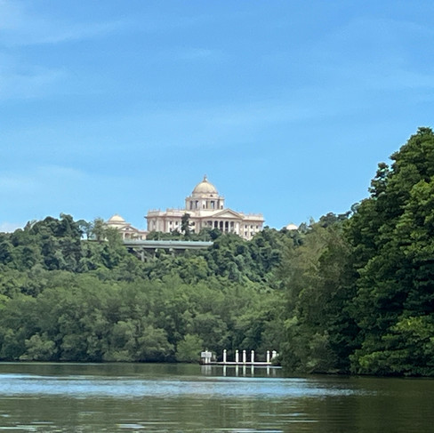 Wir passieren auch den Sultanspalast Istana Nurul Iman, der mehr als 1.700 Räume umfasst und als der größte Palast der Welt gilt. Wir sehen ihn einmal vom Wasser aus und später noch einmal das Eingangstor an der Straße.