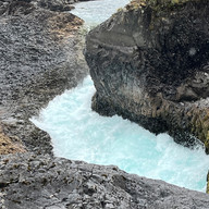 Unser nächstes Ziel waren die Stromschnellen von Petrohué. Sie werden aus den Bergen gespeist. Wenn Schneeschmelze ist, ist da noch sehr viel mehr Wasser, das sich durch und über die glattgeschliffenen Steine ergießt, aber auch so waren die Stromschnellen sehr beeindruckend.