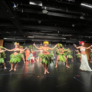 Am Abend erwartet uns an Bord die mitreißenden Darbietung der Folklore-Gruppe "O Tahiti e". Sie präsentieren traditionelle Musik und Tänze. Die Kostüme bestehen zum großen Teil aus frischen Blättern (Schraubenpalme) und Blüten, die für jede Show extra angefertigt werden. Schon nach kurzer Zeit duftet es in unserer Show-Lounge wie in einem Blumenladen.